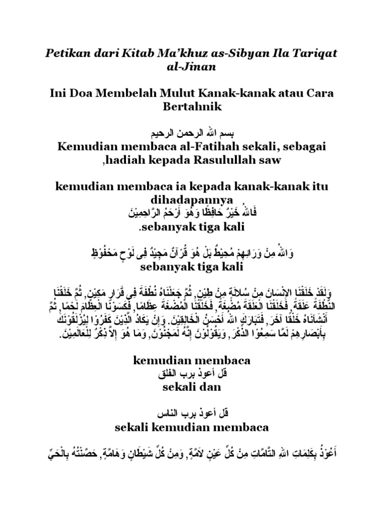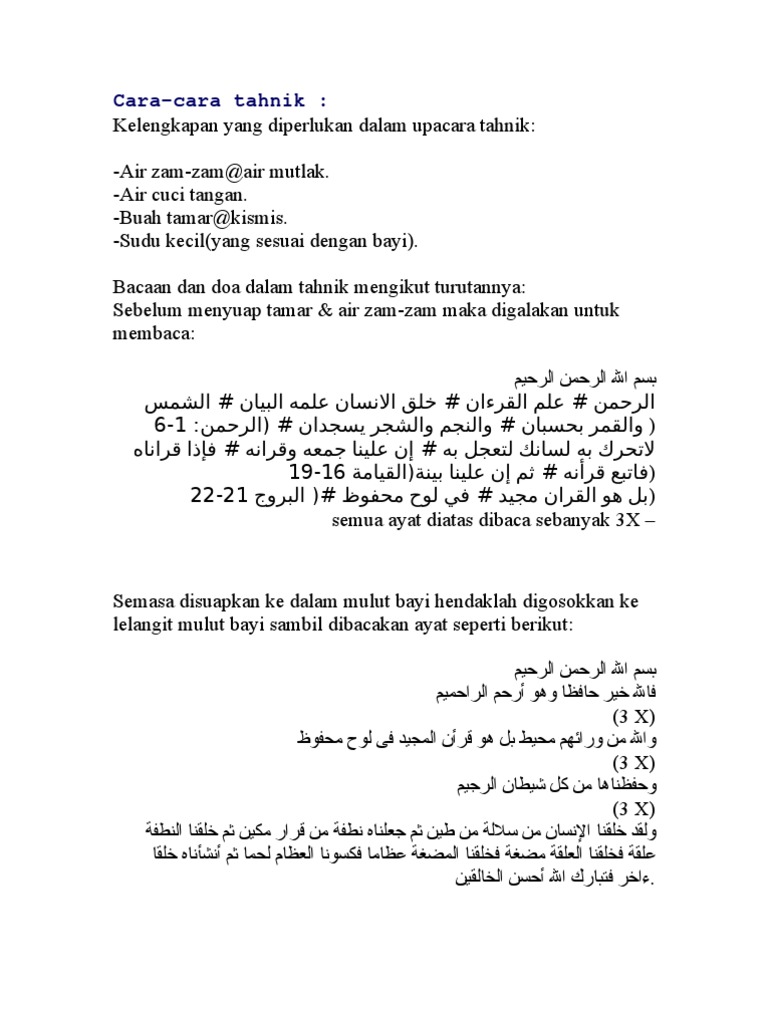 Kaifiat Dan Bacaan Semasa Tahnik Mulut Bayi Pdf