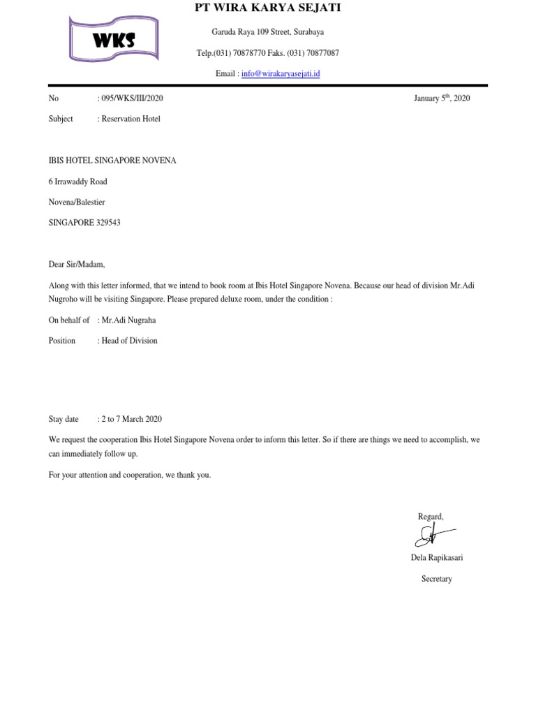 Contoh Surat Reservasi Hotel Dalam Bahasa Inggris Cuitan Dokter